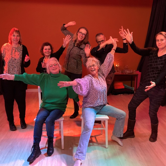 Mindfull dansen maar wel met beide voeten op de vloer! Dans je mee op woensdagavond? Ervaring is niet nodig, iedereen met een lijf kan dansen. We dansen om de week dus check de agenda. Kosten zijn 15 euro per les incl. koffie of thee na afloop. Je kunt ook een strippenkaart voor 5 lessen nemen, dat kost 70 euro. Reserveren is nodig en kan via de website.