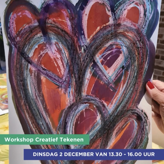 Op dinsdag 2 december kun je kennis maken met creatief tekenen. Je werkt met verschillende materialen, met elke keer een ander thema. Gun jezelf een moment van ontspanning en creativiteit. Kom jij ook?